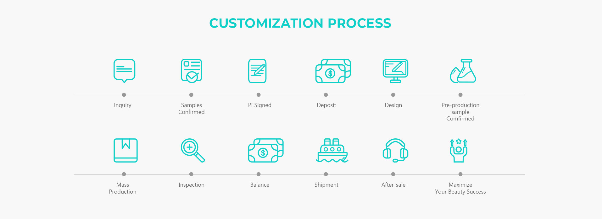 We hold certifications including Disinfection Product Hygiene License, Cosmetic Production License, Medical Device Production License, US FDA Registration, EU CE Certification, ISO13485 Medical Device QMS, and ISO22716 Cosmetic International Standard. Our product quality meets the access requirements of major global markets, helping your brand expand domestic and international channels quickly.